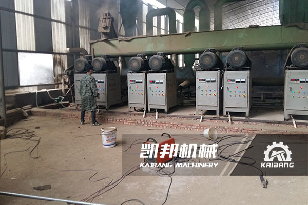 江西日產(chǎn)八噸機制木炭生產(chǎn)線現(xiàn)場。主要原材料為竹屑,炭化方式采用土窯。